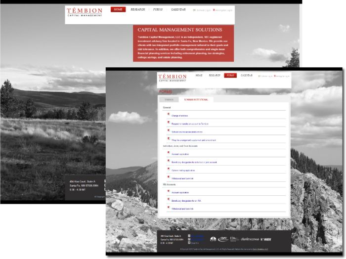 Tembion Capital Management, LLC is an independent, SEC-registered investment advisory firm located in Santa Fe, NM. Their new page allows them to provide financial forms, research information, and calendar advisories for important tax and financial related information to their clients much more easily than they were able to before.